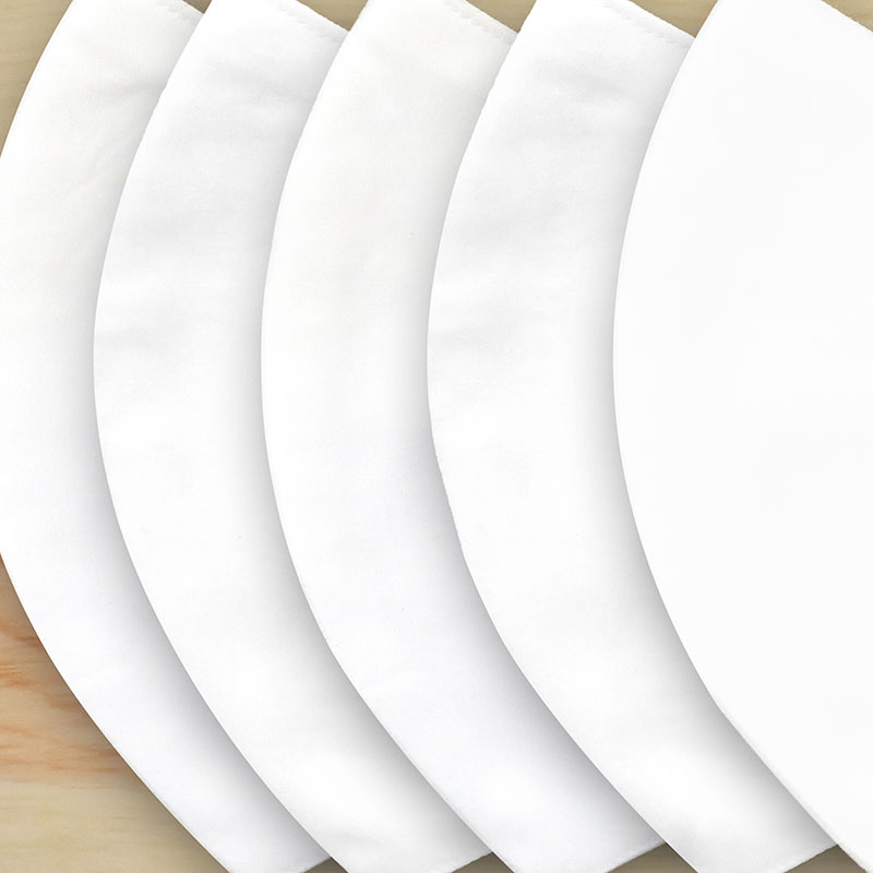 綿100%の素材を表と裏に使用し、生地の間にフィルター(ポリエステル70%/レーヨン30%の不織布)を挟んだ3層構造。